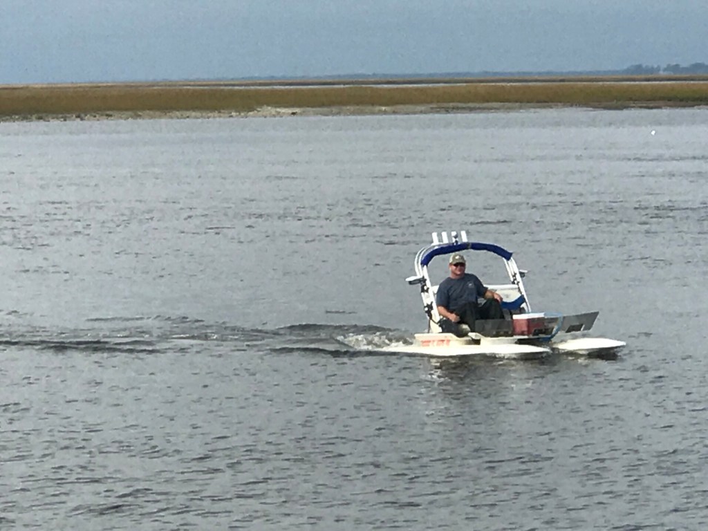 Pictured below is a guy on some kind of tiny single chair dingy with a cooler. He seemed to be enjoying himself just cruising around.