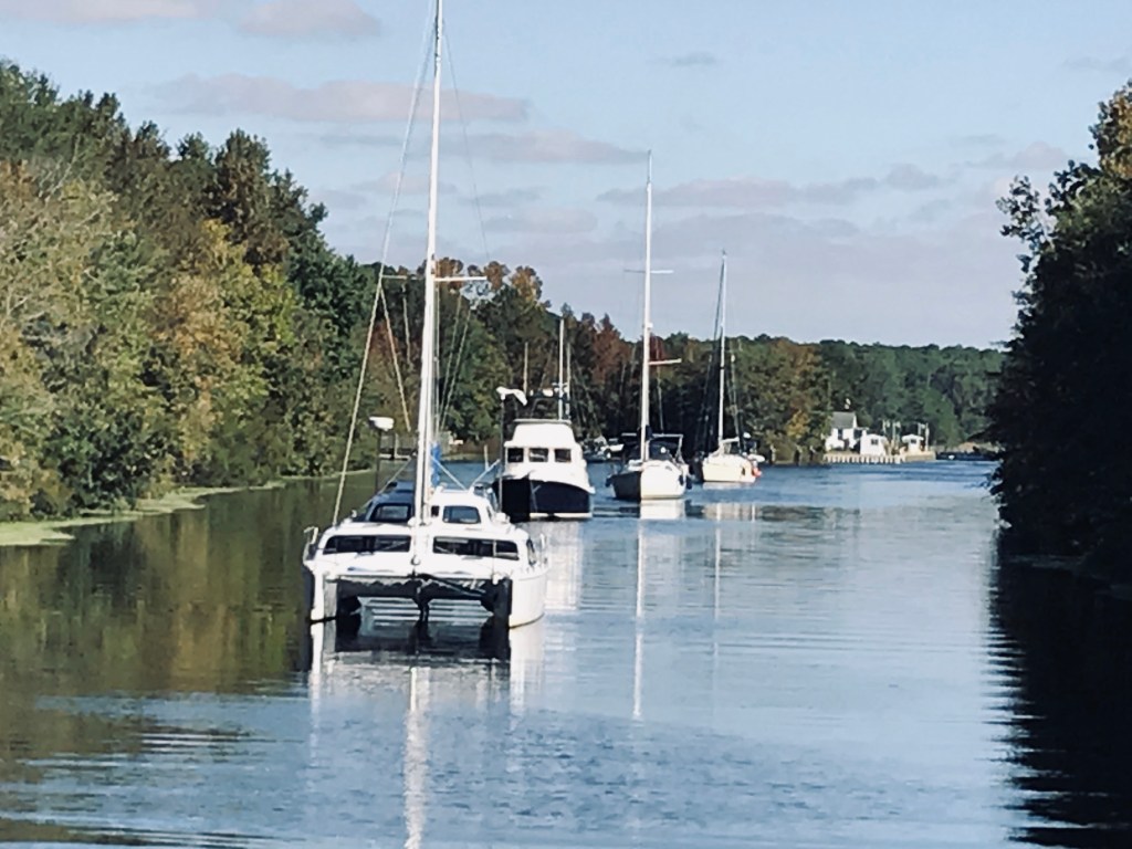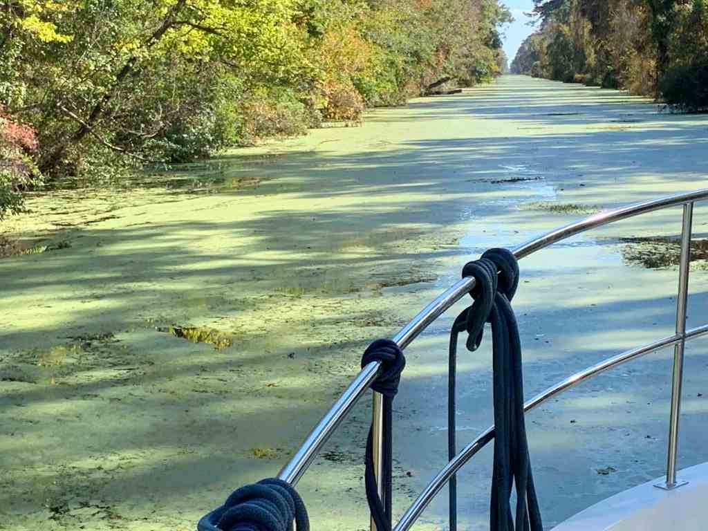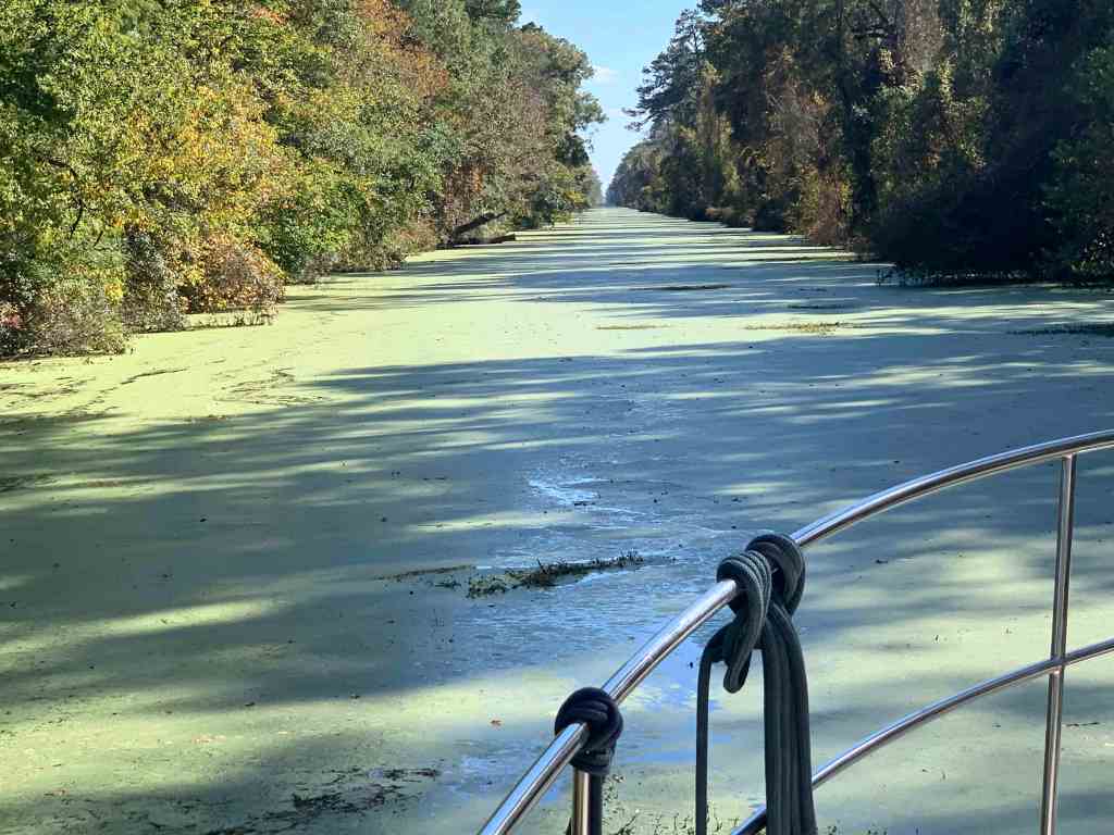 The Dismal Swamp route is beautiful but notorious for duck weed clogging your engine’s sea strainers and “dead heads” (trees stumps just barely protruding above the water’s surface or sometimes just below).