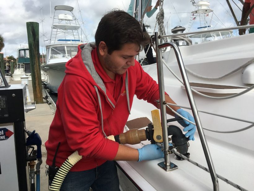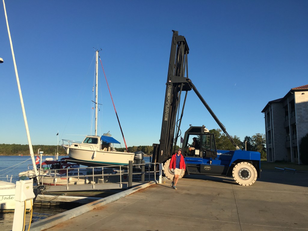 As we got ready to depart Top Rack Marina we watched as several boats were splashed down by an oversized forklift.