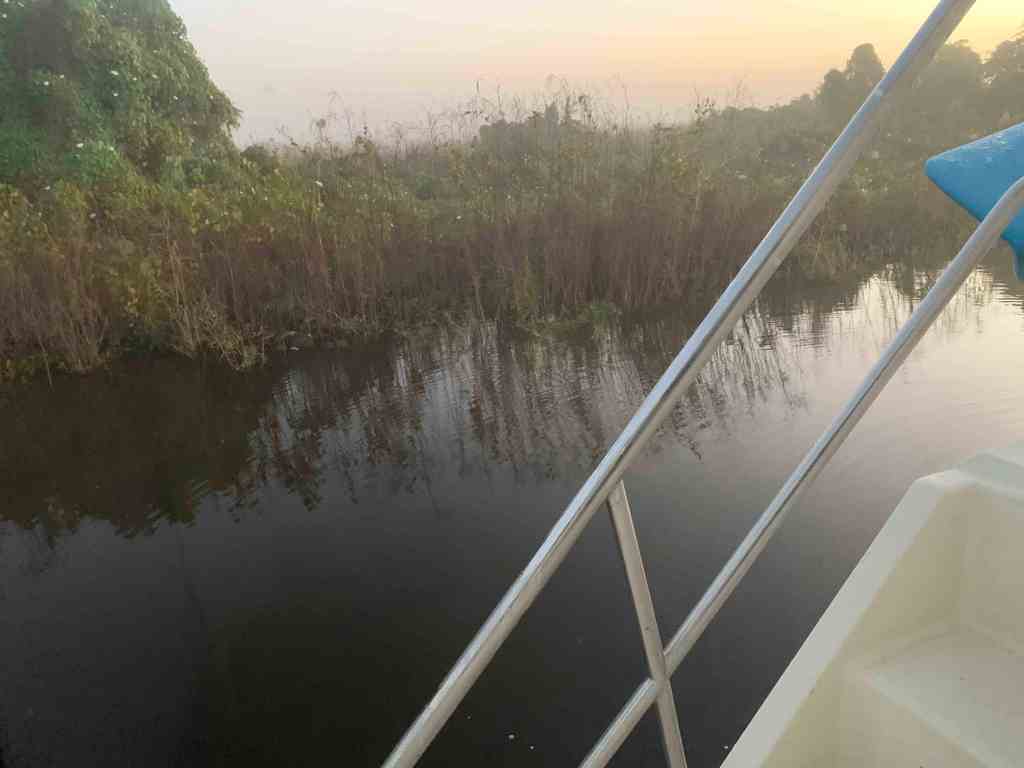 Morning fog on Lake Okeechobee Tied to the dolphins right next to shore it was still 20′ deepTown of Moore Haven
