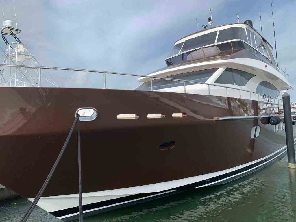 On my last night in Key West I was reading on Facebook a post from a fellow trawler guy who motored past a a 63′ Viking sport fishing boat aground on a jetty. He snapped this photo in the early morning before the sun came up.