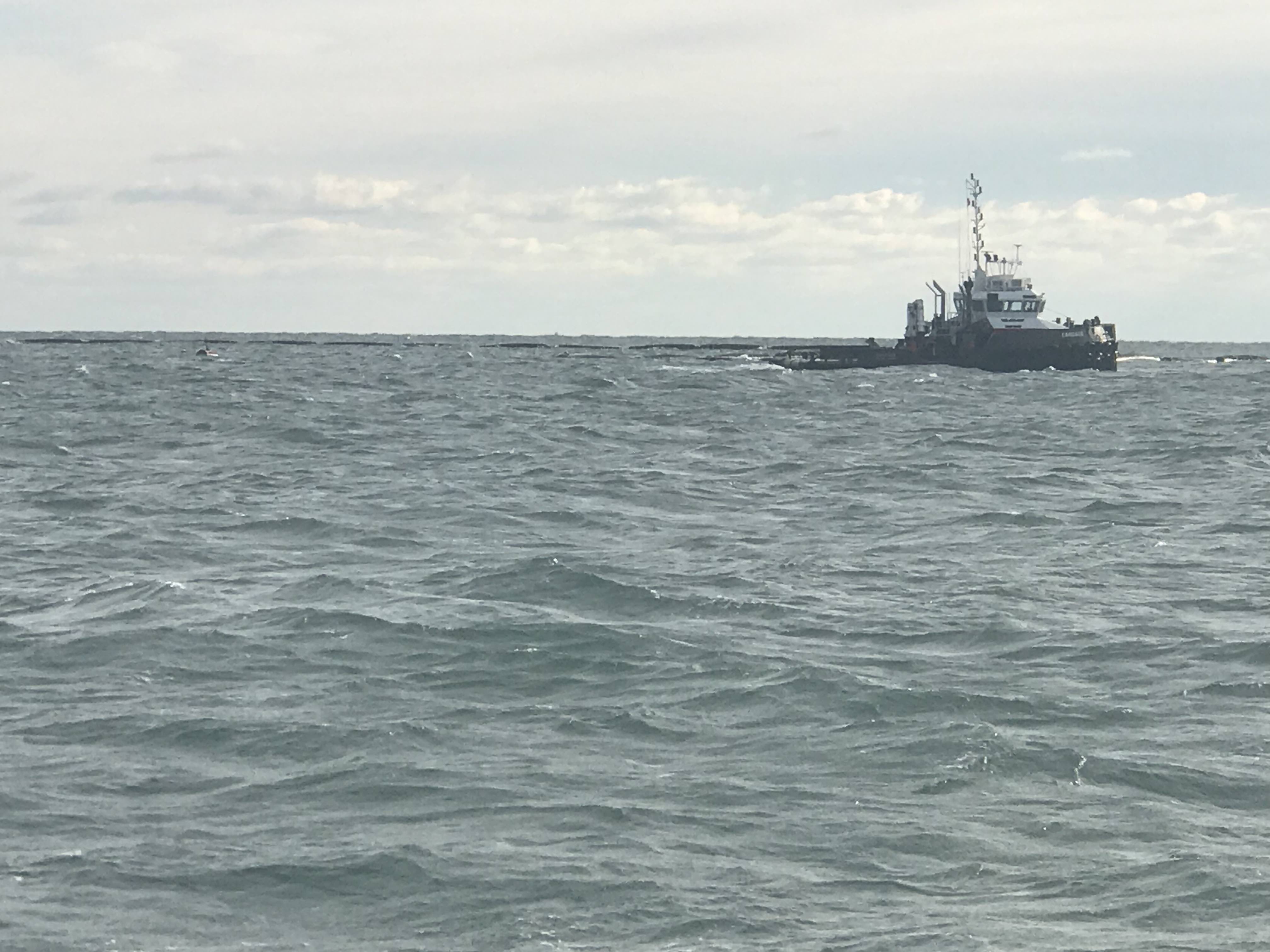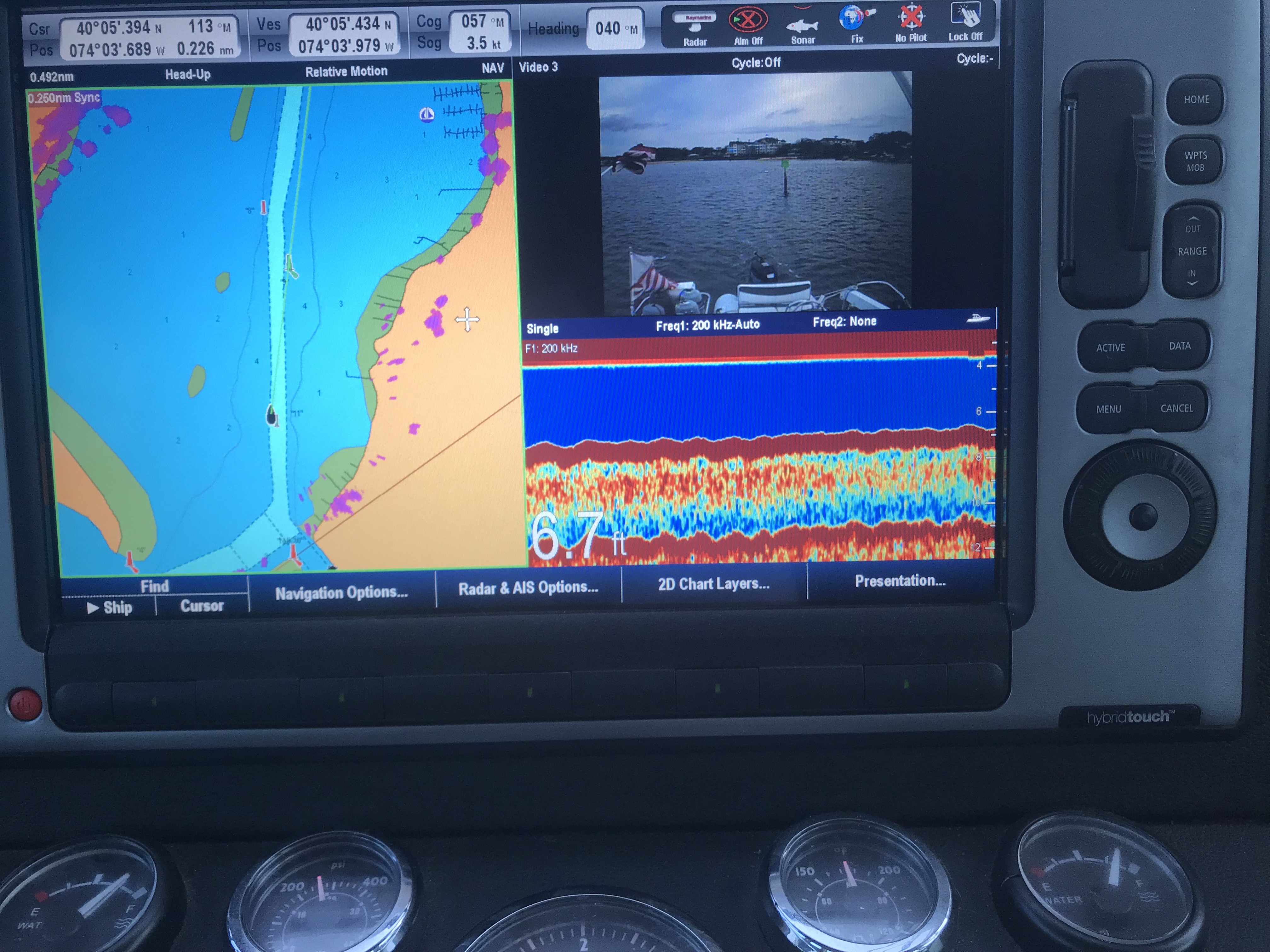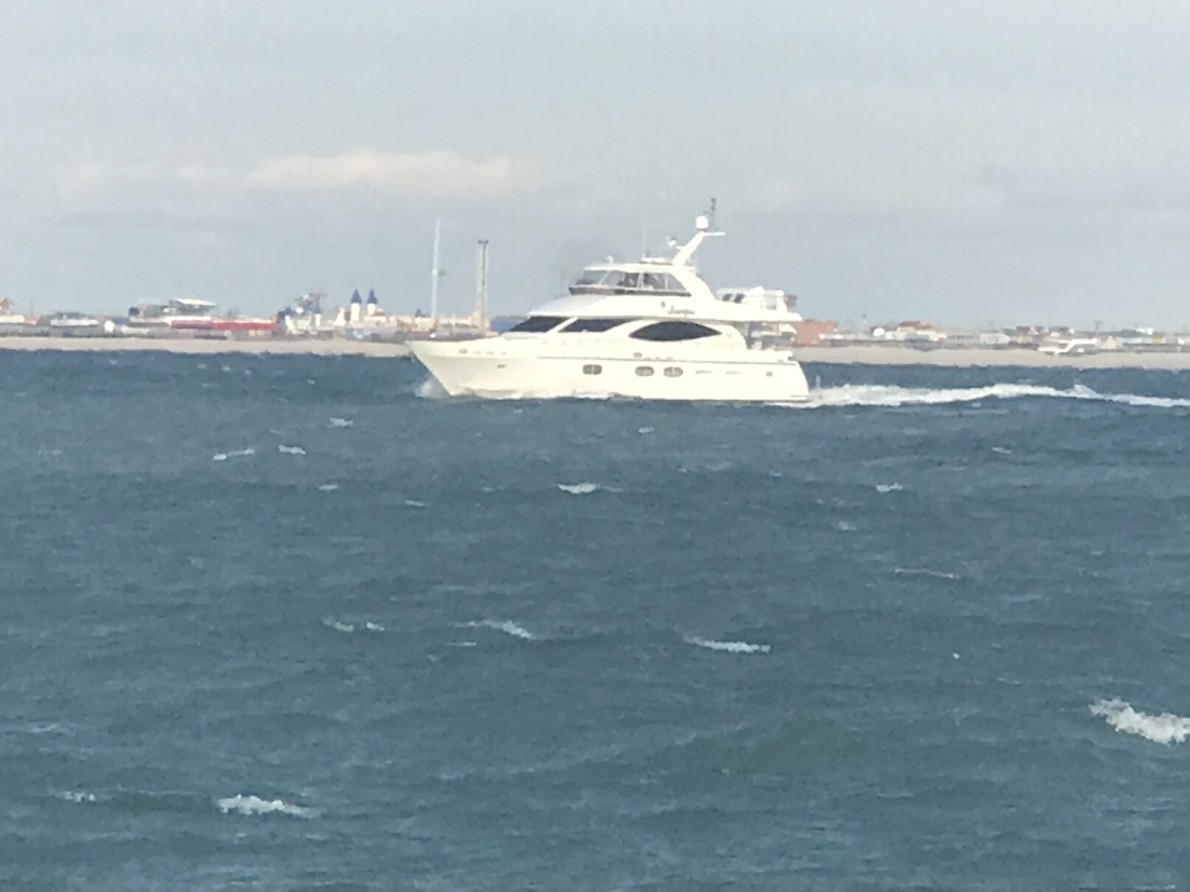 Norfolk harbor has non-stop large ship traffic transiting its entrance channel. On this day, the USCG had issued a warning over the VHF about an Ultra Large Container Vessel (ULCV) called the Maersk Edinburgh. The Maersk Edinburgh is 1201′ long and has 158′ of beam. It is certainly not hard to spot visually but I’m having trouble seeing much of anything out the pilothouse windows.