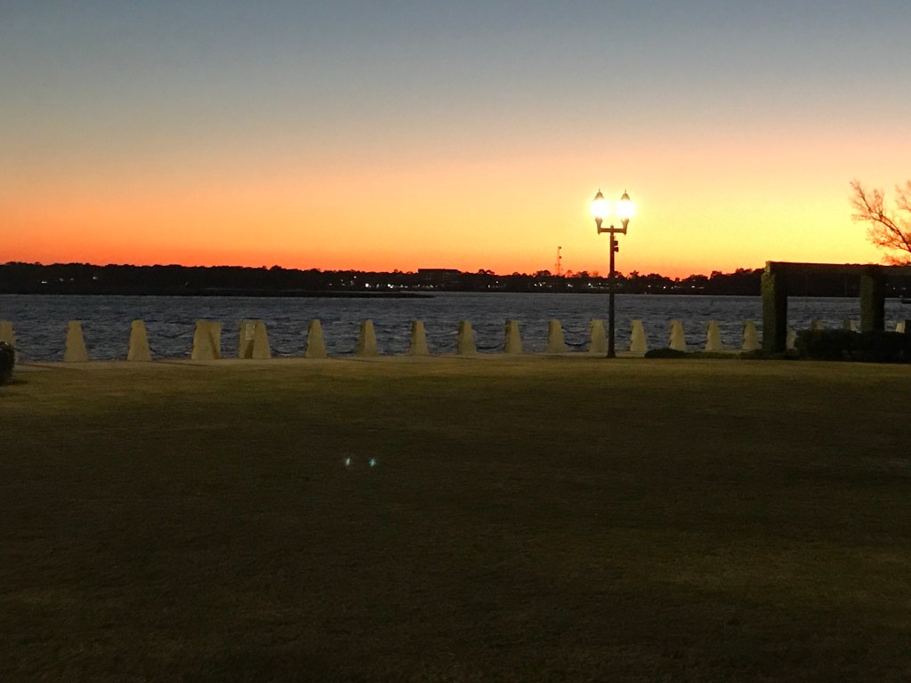 We decided to check out a few more places so we hit up a fancy place called “Saltus River Grill” and while Kelly was eying their filet mignon, the only IPA on tap was terrible so I cleverly talked her into a restaurant called “Plums” that was two buildings away and served Stone IPA. Plums had amazing food and when we could not eat another bite, it was time to stroll back to the boat and check on the dogs. On our way we walked through Henry C. Chambers Waterfront Park. I snapped the pics below as the light got low.