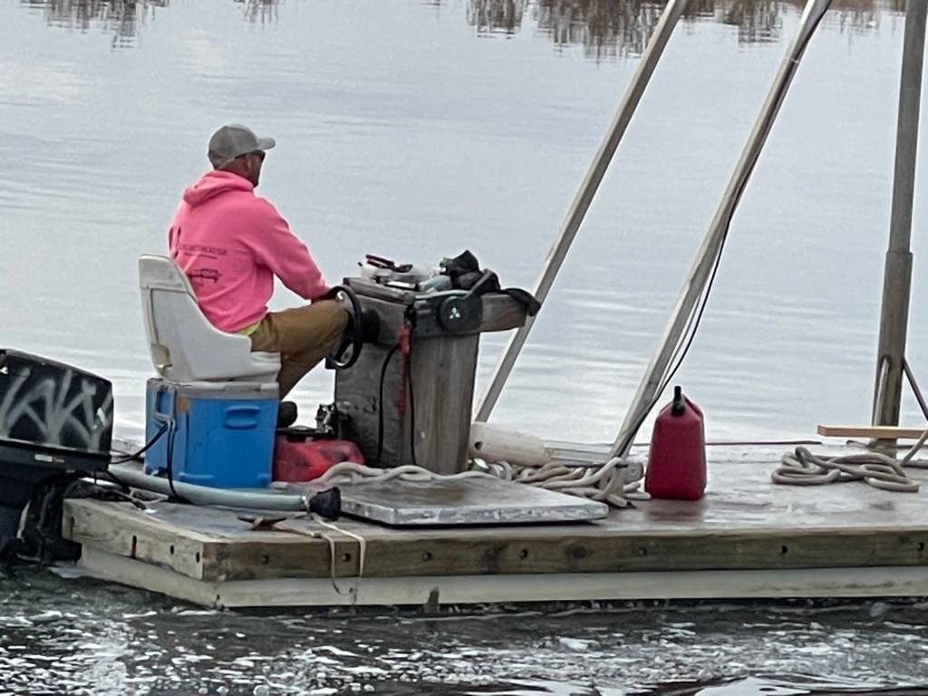 We were on our way to Southport, NC to see our friends Jim & Wende. We had to slow down to no wake speed to keep from swamping this fella who was motoring a small work barge down the ICW.