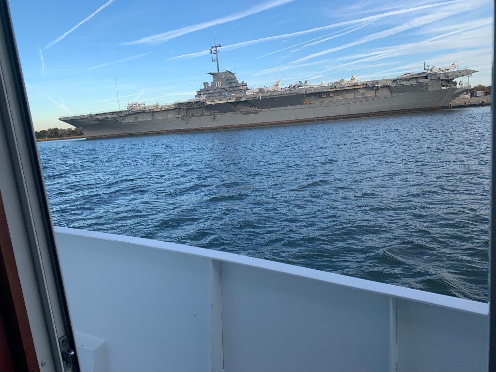 We arrived in Charleston, SC and the marina we requested a slip from had us “wait-listed”. We anchored for the night next to the USS Yorktown.