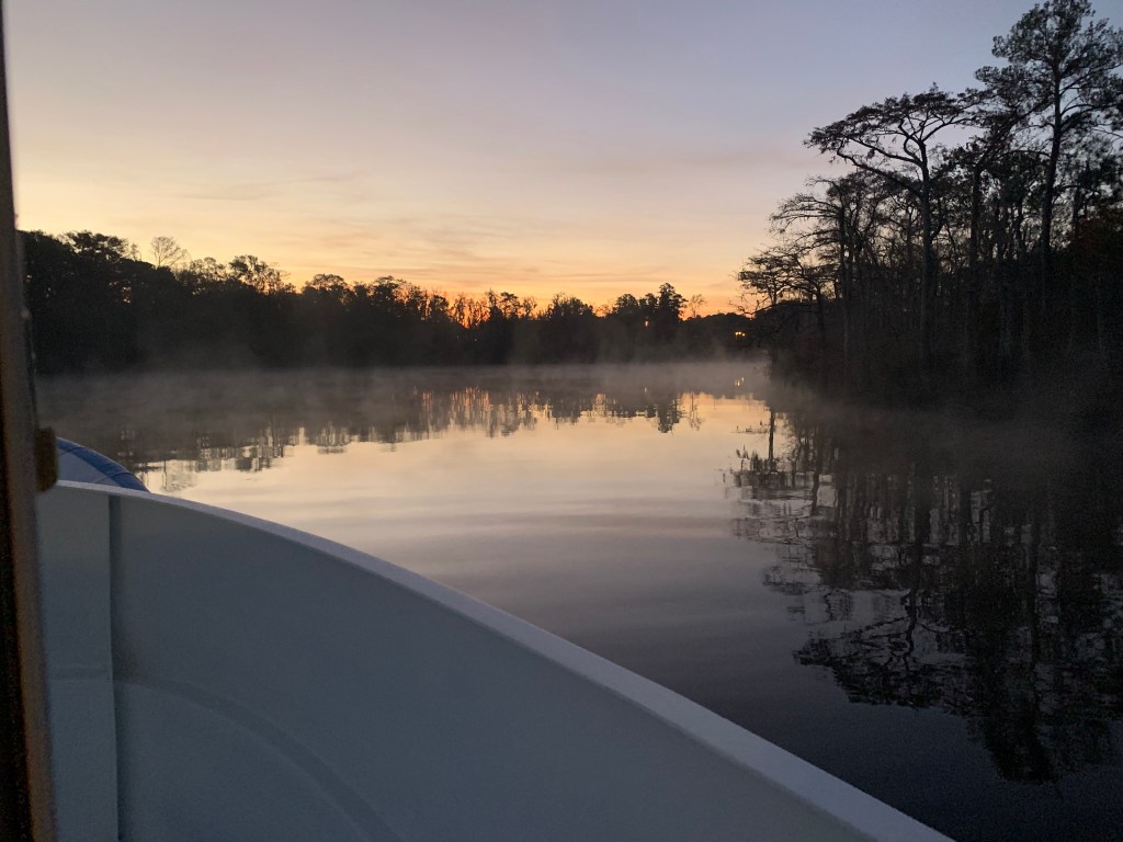 As we made our way into the Waccamaw River preserve we had to get through the Socastee swing bridge but we were staring straight into the sun. The best we could do was go slow and use the radar to see in front of the boat.