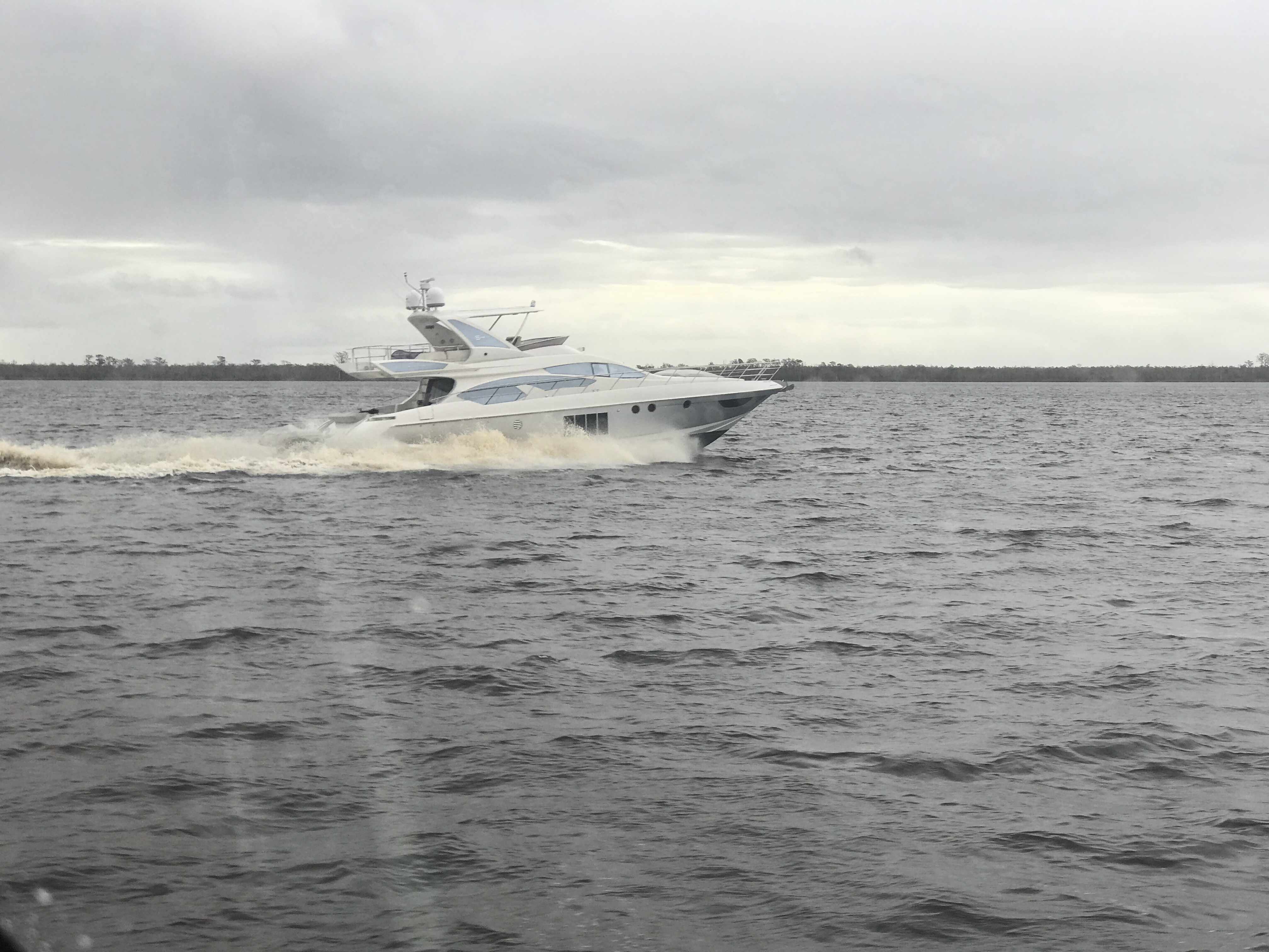 When we were finally allowed to continue down the ICW we and all the other boats were racing to make it to the only decent anchorage within range. You must be careful when you run fast down the ICW because if you run up on a shoal going fast you may not be able to back off of it. Soon the sailboat behind us ran aground and they asked us if we would turn around and come back and wake them as hard as we could to possibly rock them off the shoal that had them stuck. We agreed knowing that it was risky as in order to wake them we’d have to run fast right next to the shoal they were stuck on. We did our best but in the end a local crab boat was the one who deserves the credit for pulling them off.