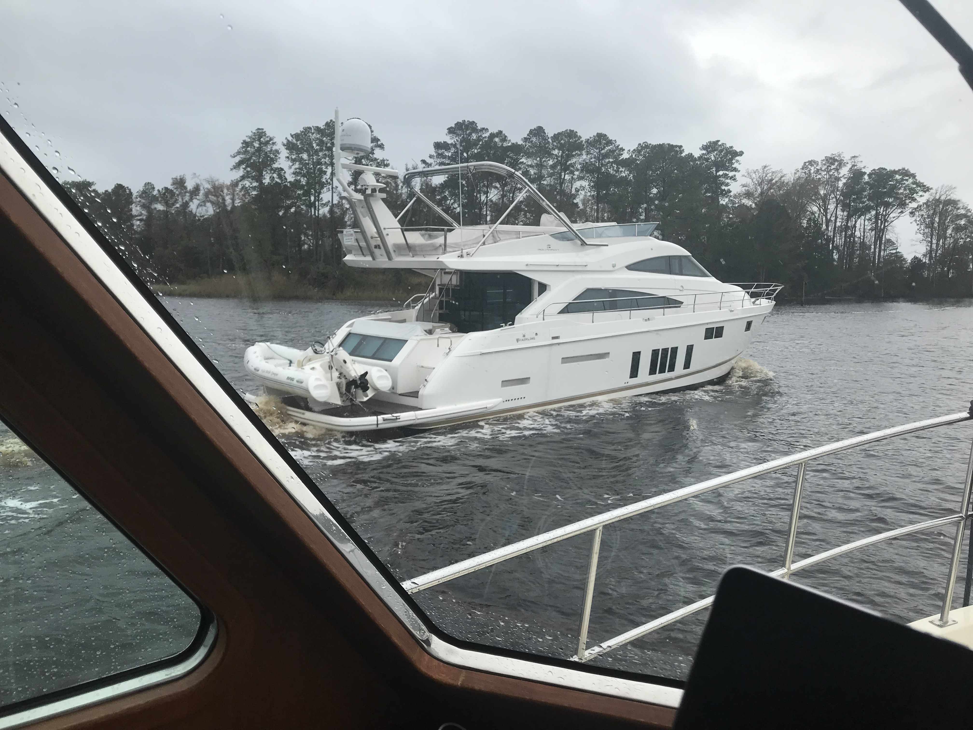 As we got the point where the ICW connects with the Cape Fear River via “Snow’s Cut” we were passed by a US Army Corp of Engineers survey boat. These folks use sophisticated sonar to accurately probe the depths of these constantly changing waterways. He kindly slowed down as he passed and got back on plane once he was in front of us. However, just then the VHF crackled on channel 16, “Trawler in Snow’s Cut, are you OK?”. I quickly answered the hail with “comeback to the trawler in Snow’s Cut”. It was a boat in a marina that was hailing us stating that they “saw what had happened”. I replied, “If you are referring to the ACE boat that passed us, yes we are OK”. I found this communication amusing and I can only guess that the survey boat had passed the marina giving a large wake and making the marina boat unhappy and maybe this was her way of shaming the ACE boat publicly on the VHF?