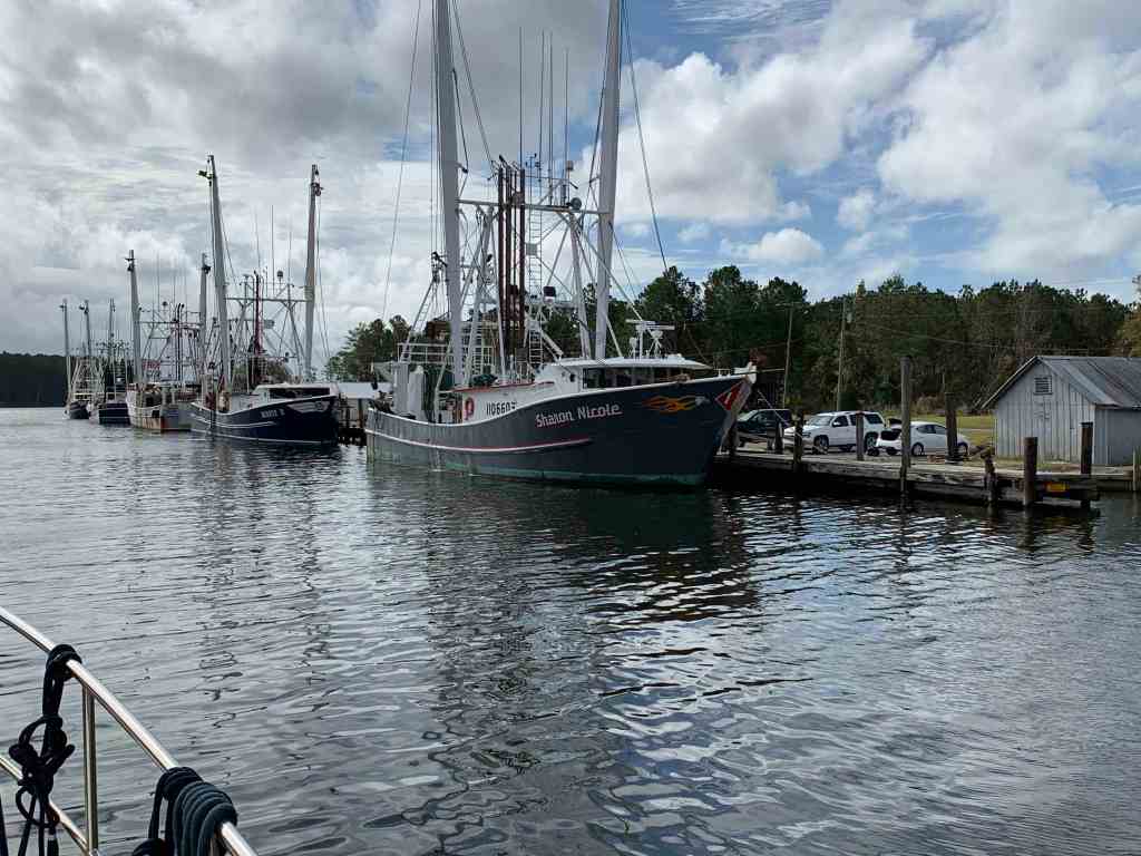 It’s getting late in the day. The sun is sinking low as I pass the RE Mayo Seafood company. I love seeing the large shrimp boats tied to their docks.