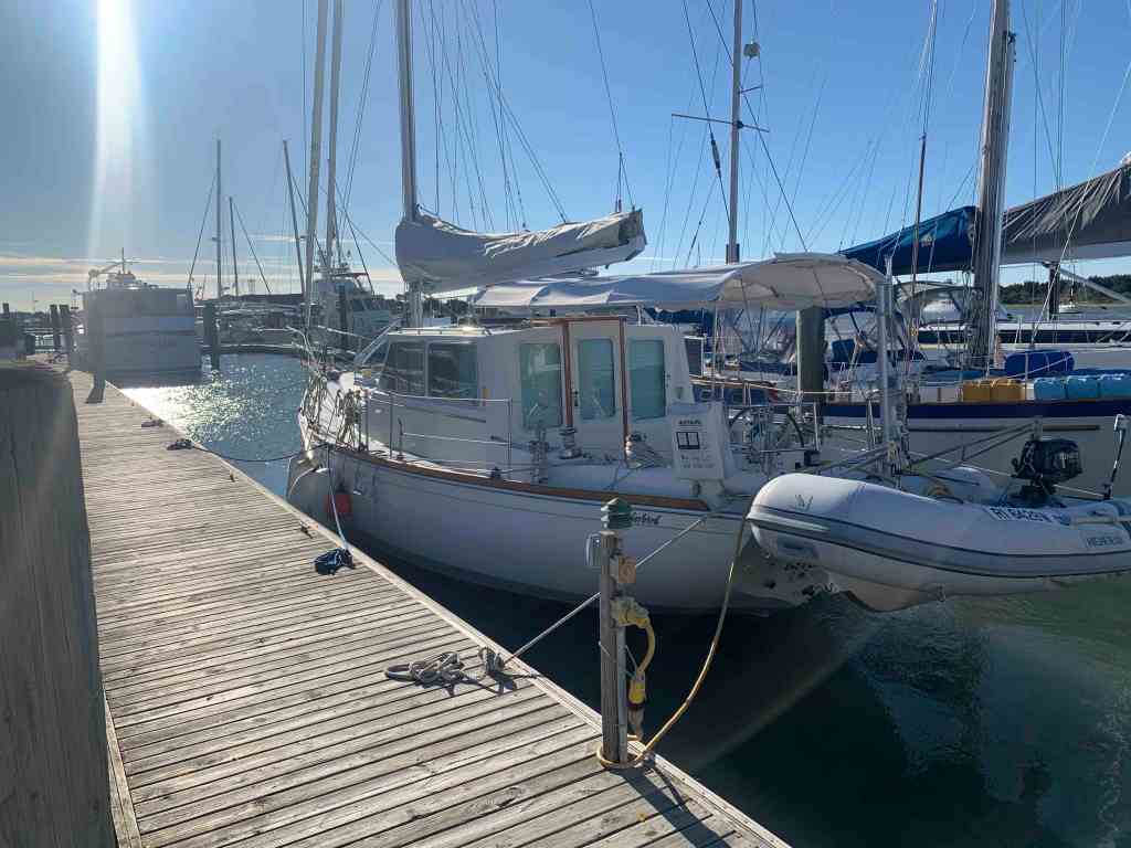 Debbie calls out “Good Morning” while standing on her bow. Glen and her are prepped to weigh anchor as we are looking to get underway before sunrise.