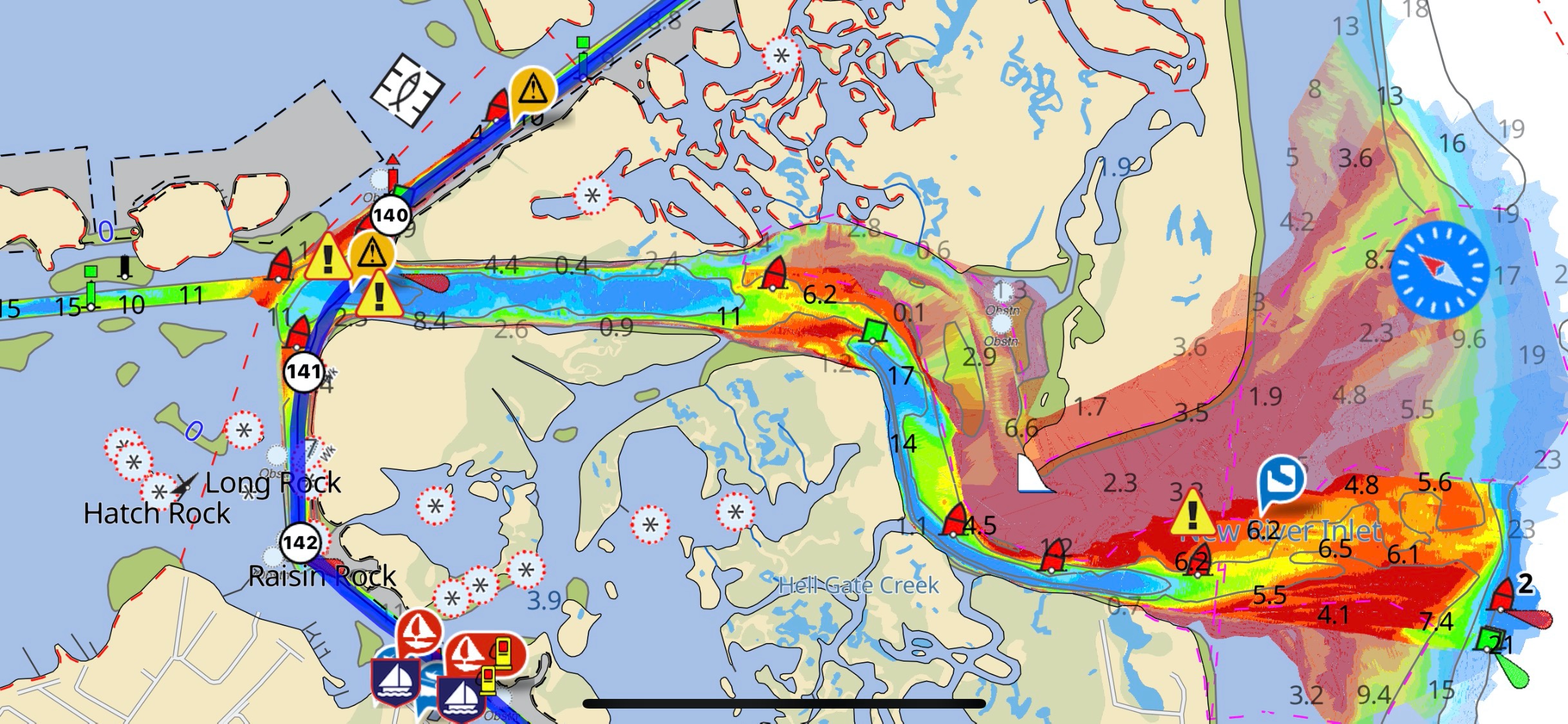 Taking a boat south for the winter in the ICW is easy once you figure out the new methods of how to navigate the constantly changing ICW path. Just as I type and state how easy it is… I look up from my MacBook and see a depth of only 6.4′! Yikes, I was not paying attention while on autopilot and had slowly motored outside the narrow channel. A quick pull back of the throttle and course correction of 60 degree to port and I’m back safely in the channel.