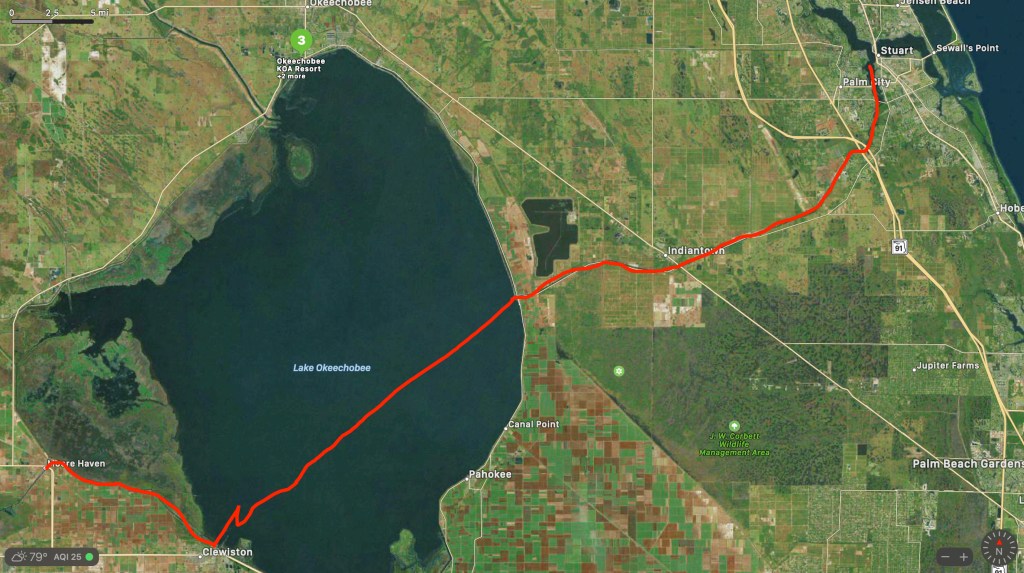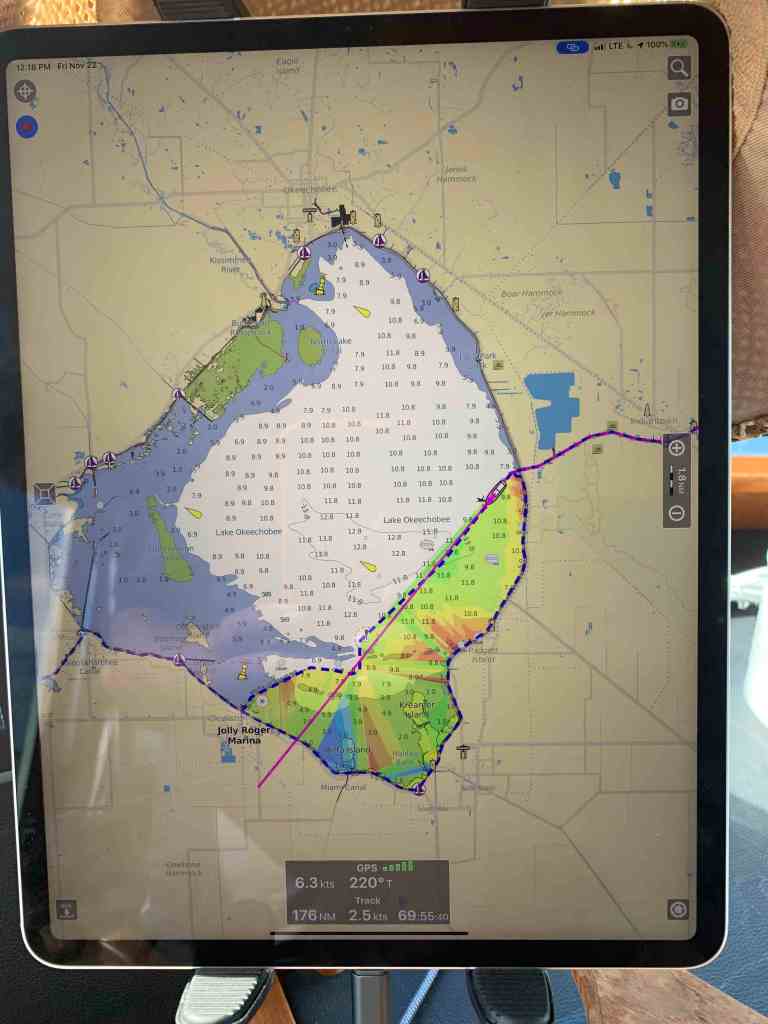 Having traversed the Okeechobee Waterway a few times, I should have checked the water height of Lake O before even starting down the Saint Lucie River. I figured that Hurricane Eta dumped so much rain on the watershed that dumps into Lake O … it would not an issue. I do a quick check of the USACE website and it is 16+ feet. The highest I have ever seen it.