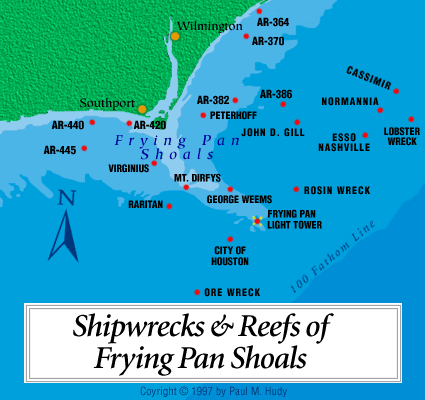 Now reaching where the ICW departs from the Cape Fear River I look over and see the famous Frying Pan restaurant. Named after Frying Pan Shoals found extending offshore from Southport, NC.