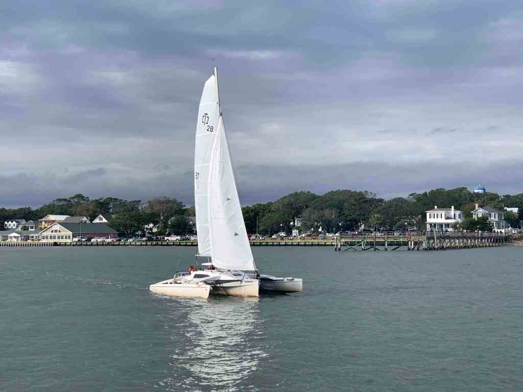 Moments later I was running around the topsides of the boat while it’s driving itself on autopilot. I am setting fenders on both sides of the boat and prepping my dock lines so that I can back into my slip and tie her up. When I looked up I was actually going by the entrance to SJP Marina and had to run up and turn back a bit. There are moments when I’m running around performing the first mate’s job and the boat is just driving itself.