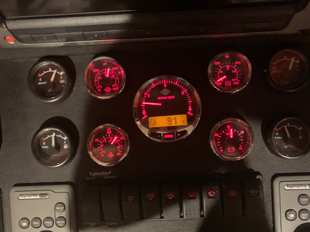 It is 4:50AM in Topsail, NC. The engine coolant temp was showing 91 degrees. Still warm from running the night before.