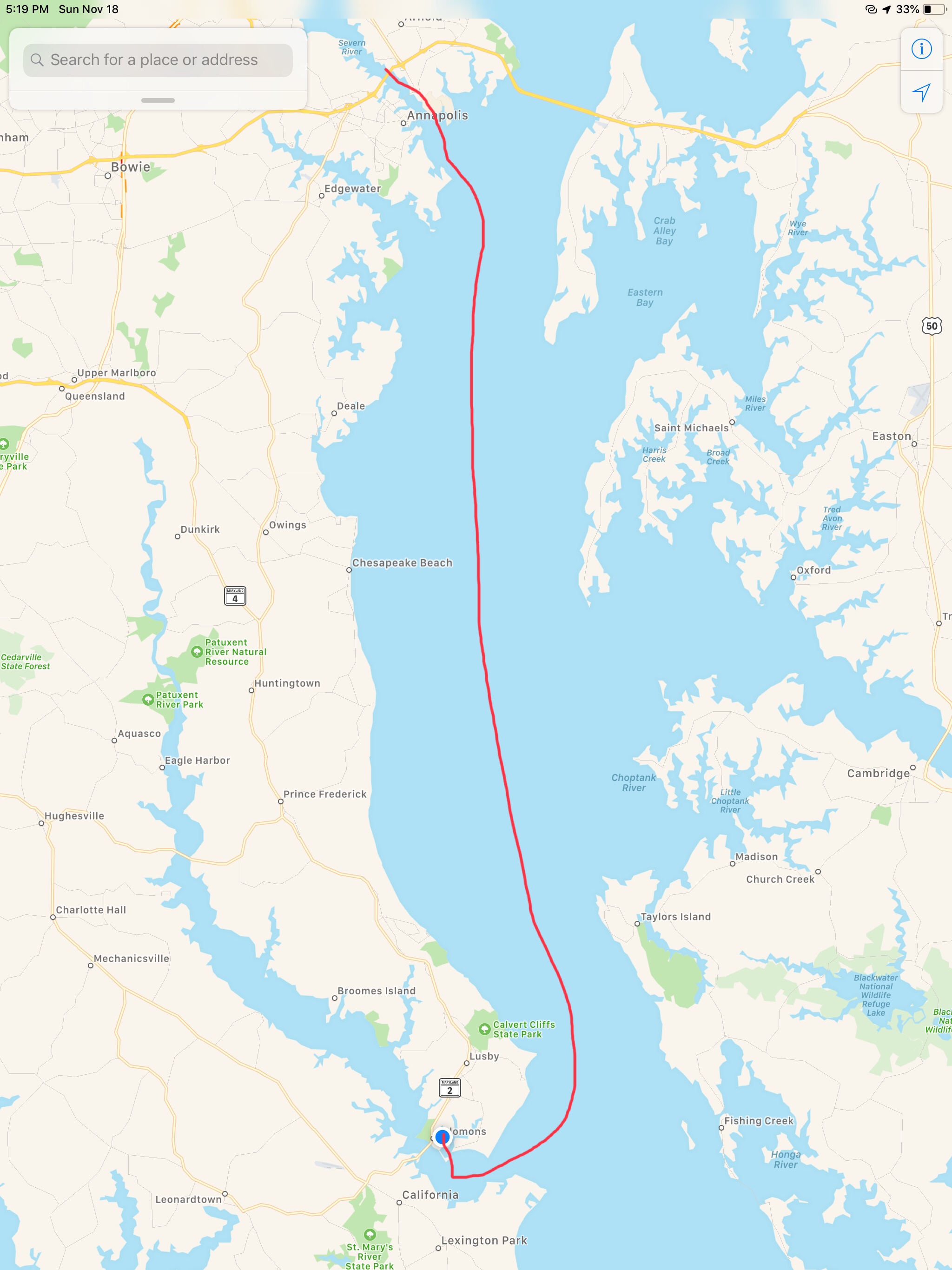 Our trip down mid Chesapeake Bay looked something like this.