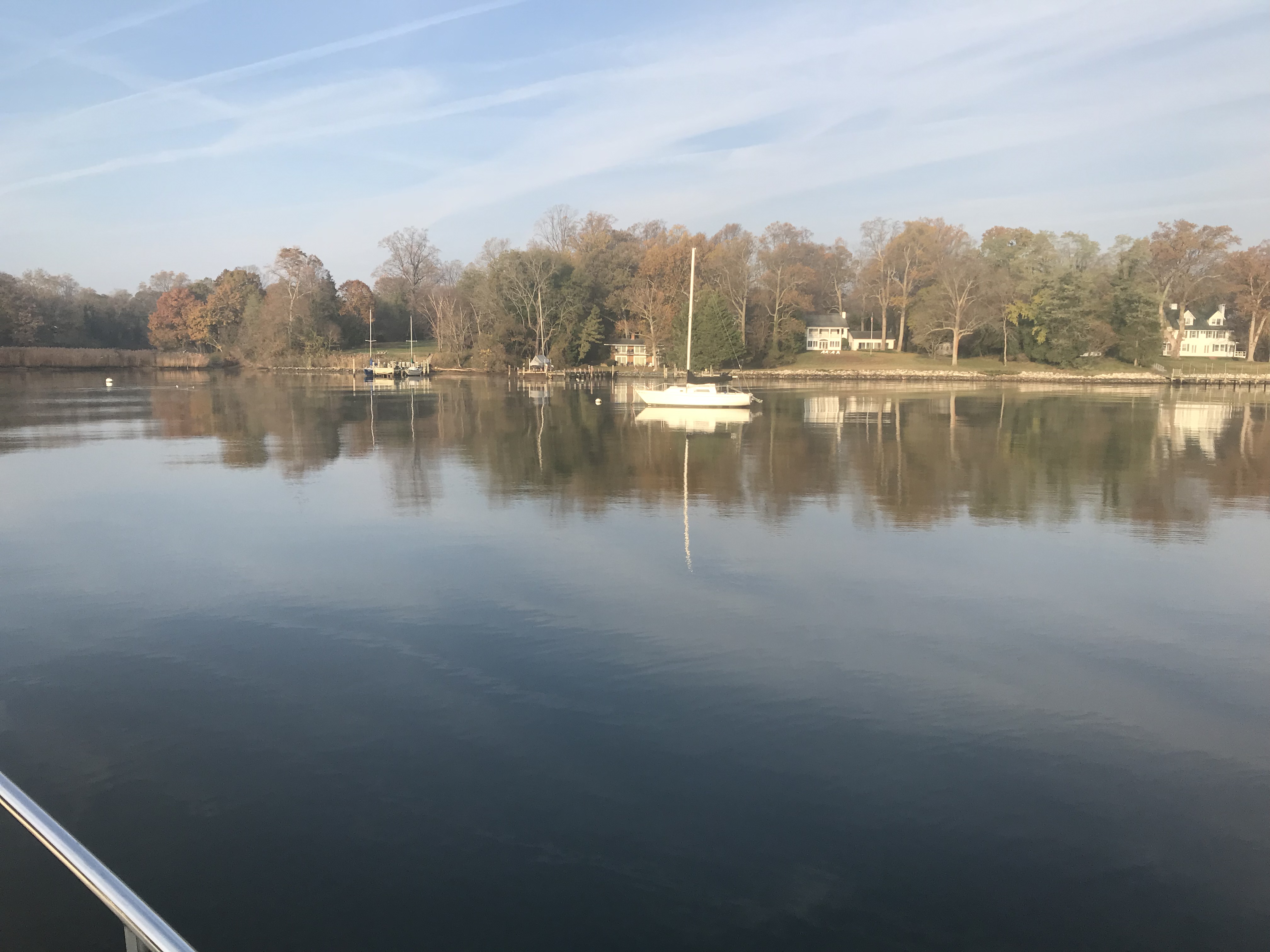 We had made reservations to spend the weekend at a marina in Solomons Island but left a day early as the weather would be better a day early. We slipped past Safe Harbor Marina and further up the Back River until there was nowhere else to go. A dead end. We squeezed Simple Life into a small cove surrounded by beautiful homes.