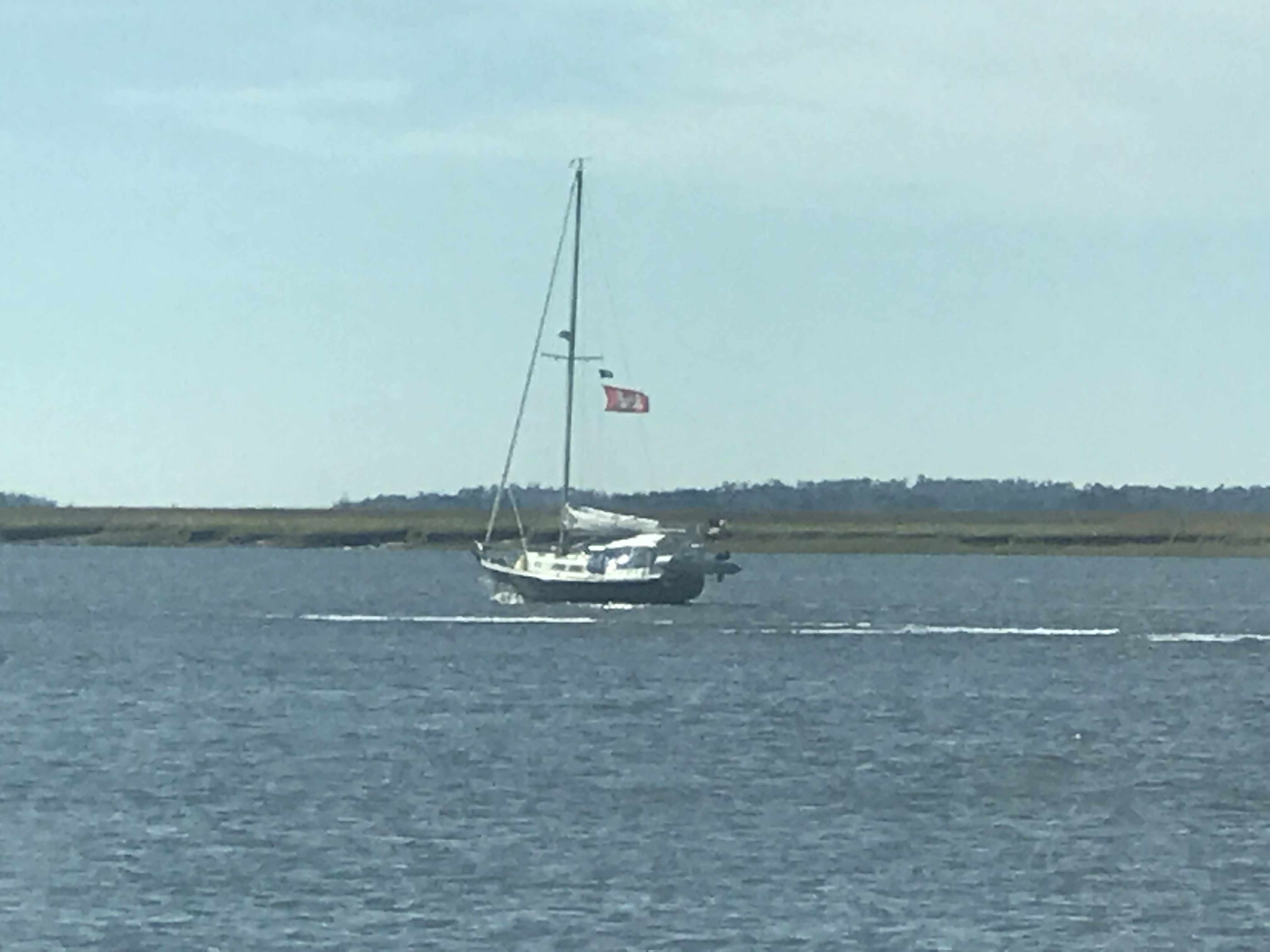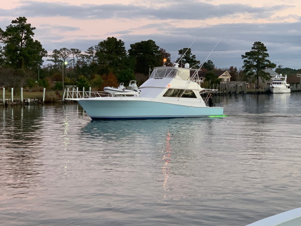 In the morning we cast off the lines and set out for Belhaven, NC. We snapped this photo of a nice looking sportfishing boat called MV McLovin which hailed from a port near me in RI.