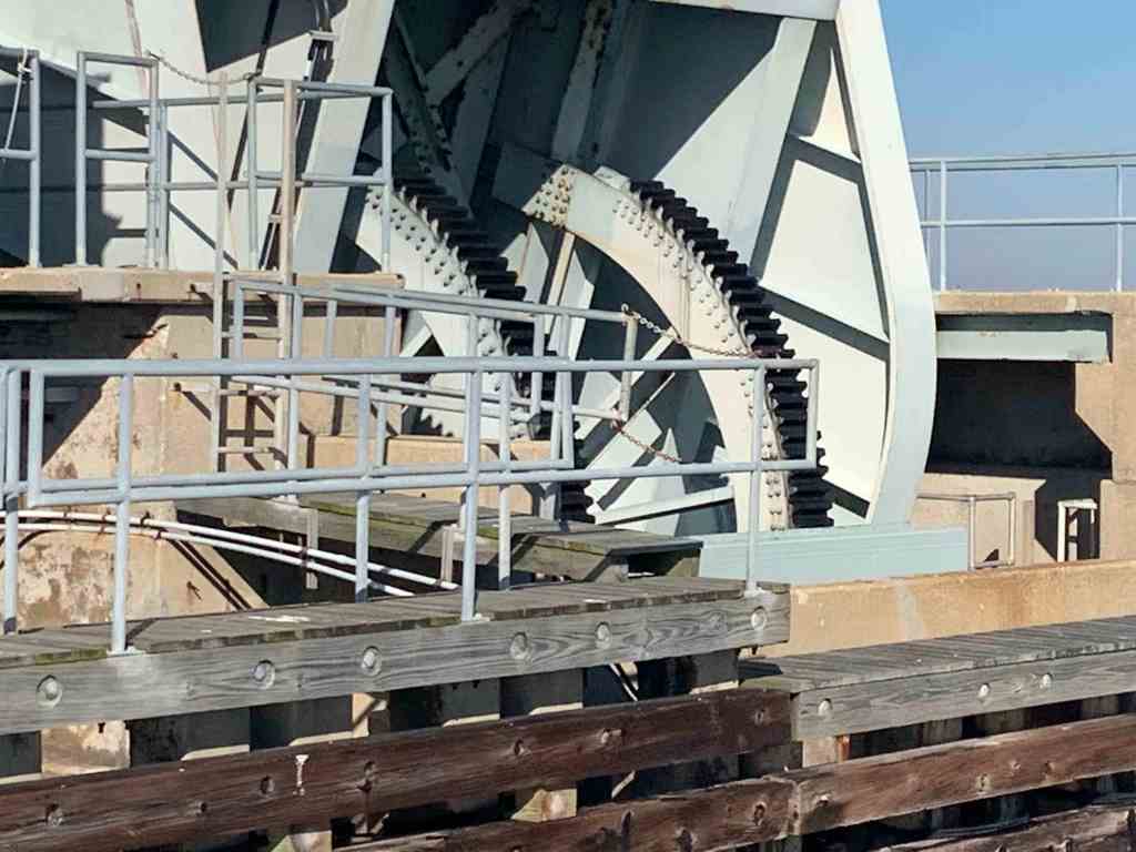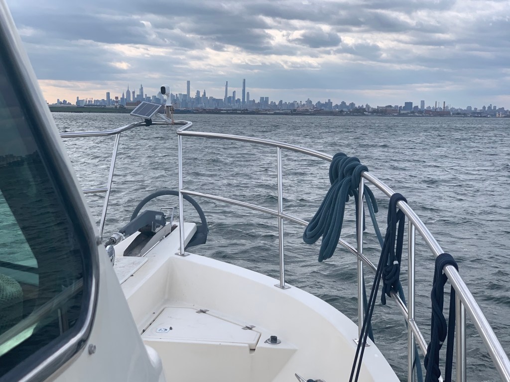 We left our slip in Solomons Island and the captain forgot to close the boarding gate door. We pulled up to the pumpout dock and the dockhand asked me to pull a bit more forward so the pumpout hose would reach and we heard a metal noise? The boarding gates on Simple Life open outward (very strange and a bit dangerous if you lean against an unlocked door) and when open they stick out further than the rubrail. The door caught on the fixed dock pilings and the sound was it being removed from the boat.