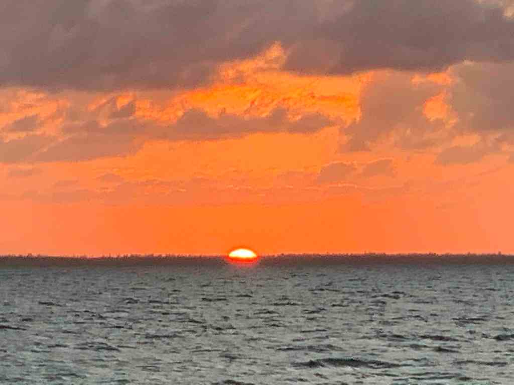 It was a long 100NM trip here today cruising at 10kts. We left as the sun was coming up and dropped anchor just as the sun was going down.