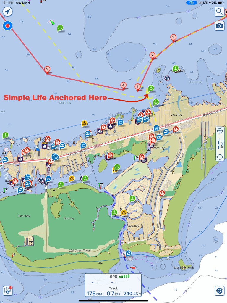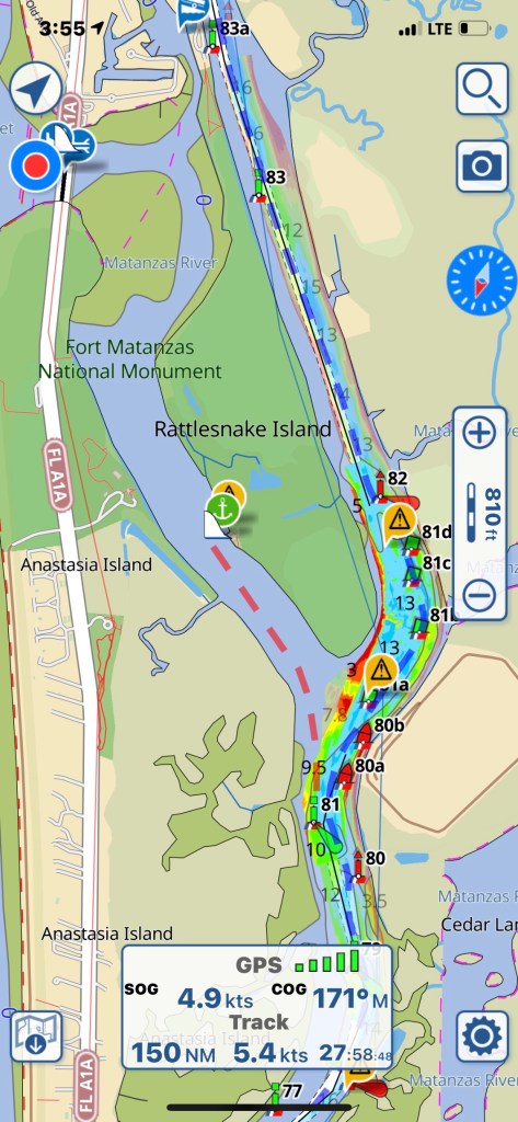 In the AM we pulled out and circled ICW Mile Marker 0 which is actually this red buoy #36