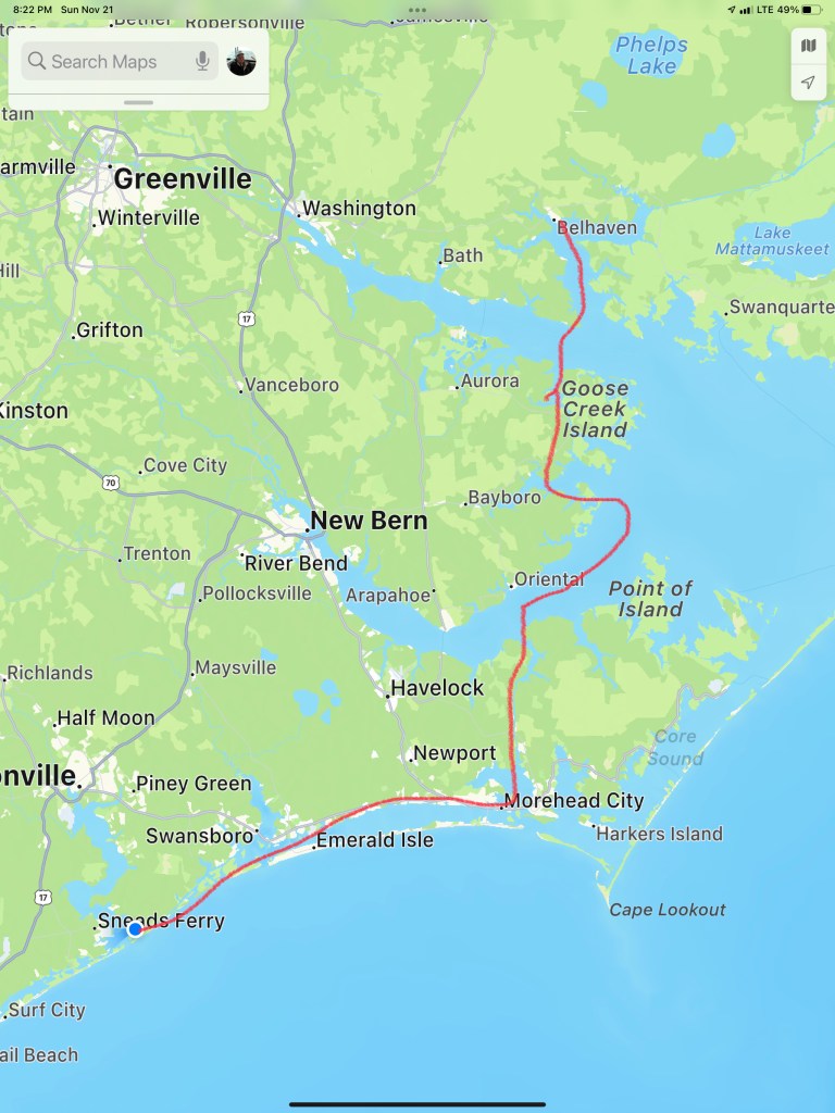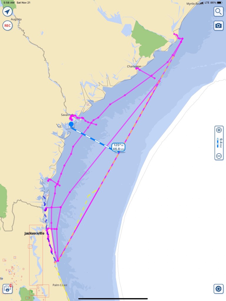 As I sit here anchored in Camp Lejeune I am finally getting a blog post out. The five unblogged legs of our journey that got us to this location looked something like this…