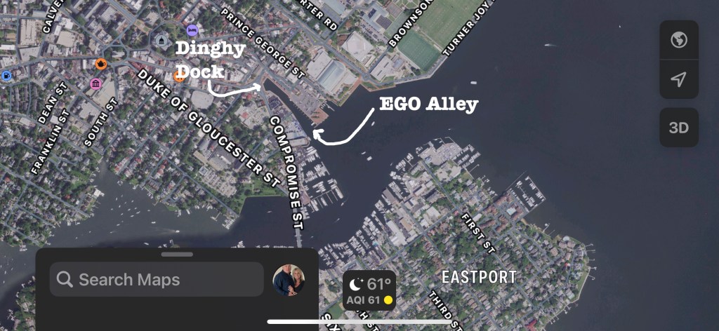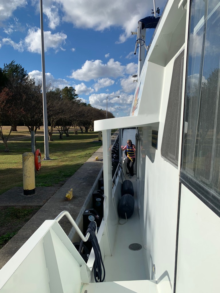What to do? We are tied up at the dock and our door is 2 fathoms below us. It’s muddy brown Maryland water. Now… I love being “on the water” but I don’t like being “in the water”. Especially when the water is 57 degrees! Hmmm. Let’s call for an expert.