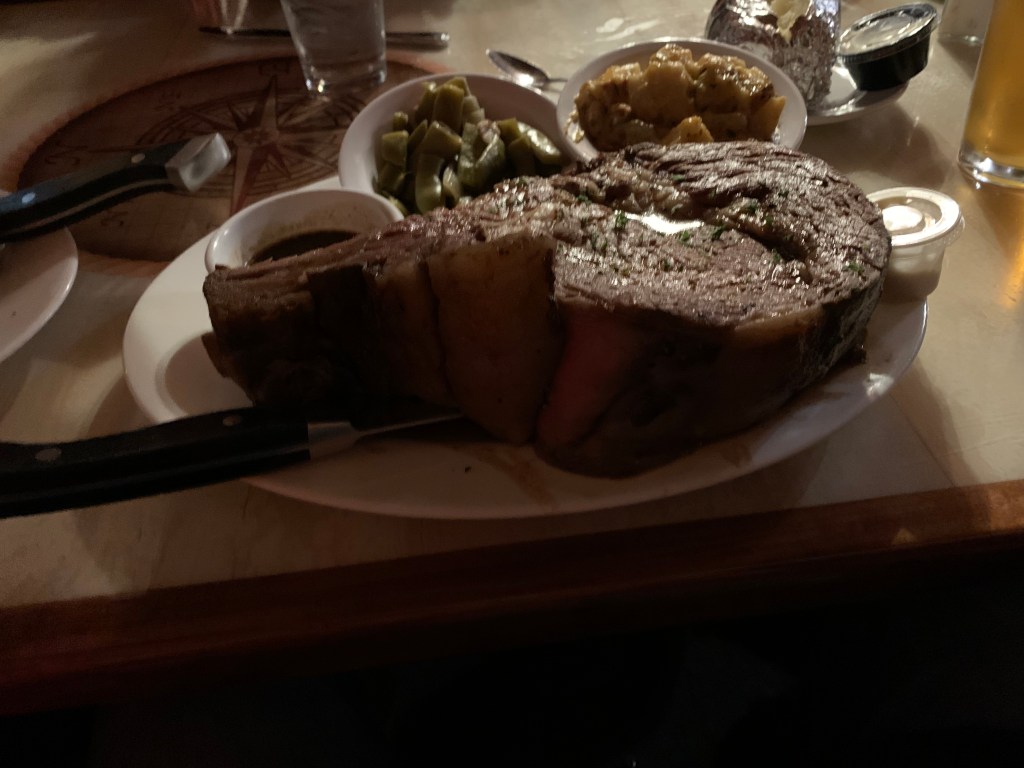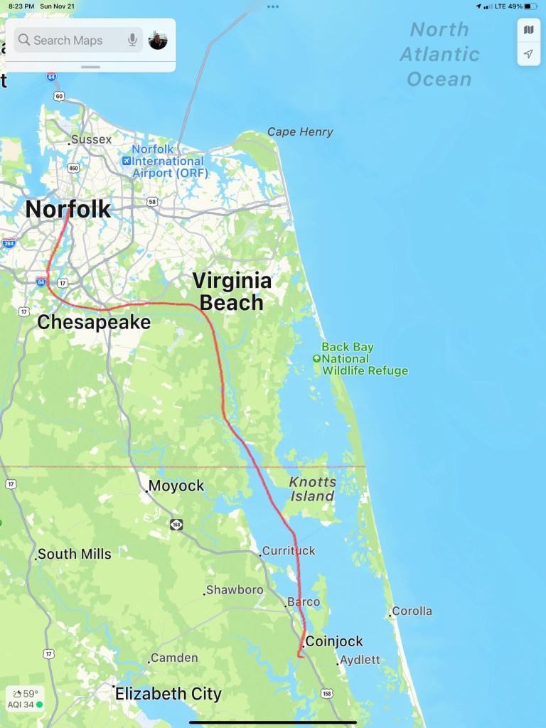 It was sad to leave our friends but the next morning we topped of the 1/2 full fuel tanks ($3000 worth of diesel) and set out for Coinjock Marina. When we arrived we saw MV iiwii was already tied up at the marina. We had just enough time to clean up and rush to get the Coinjock Restaurant’s famous 32 ounce prime rib special.