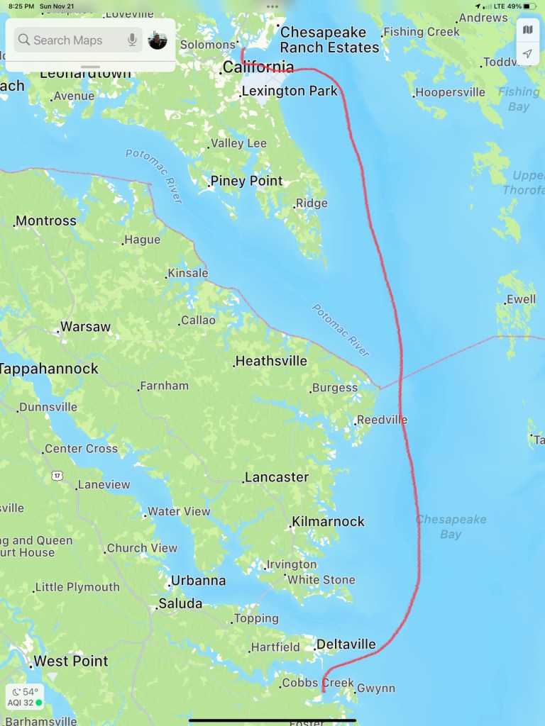 The next morning we had a great breakfast and set out for Gwynn Island just south of Solomons Island, MD.