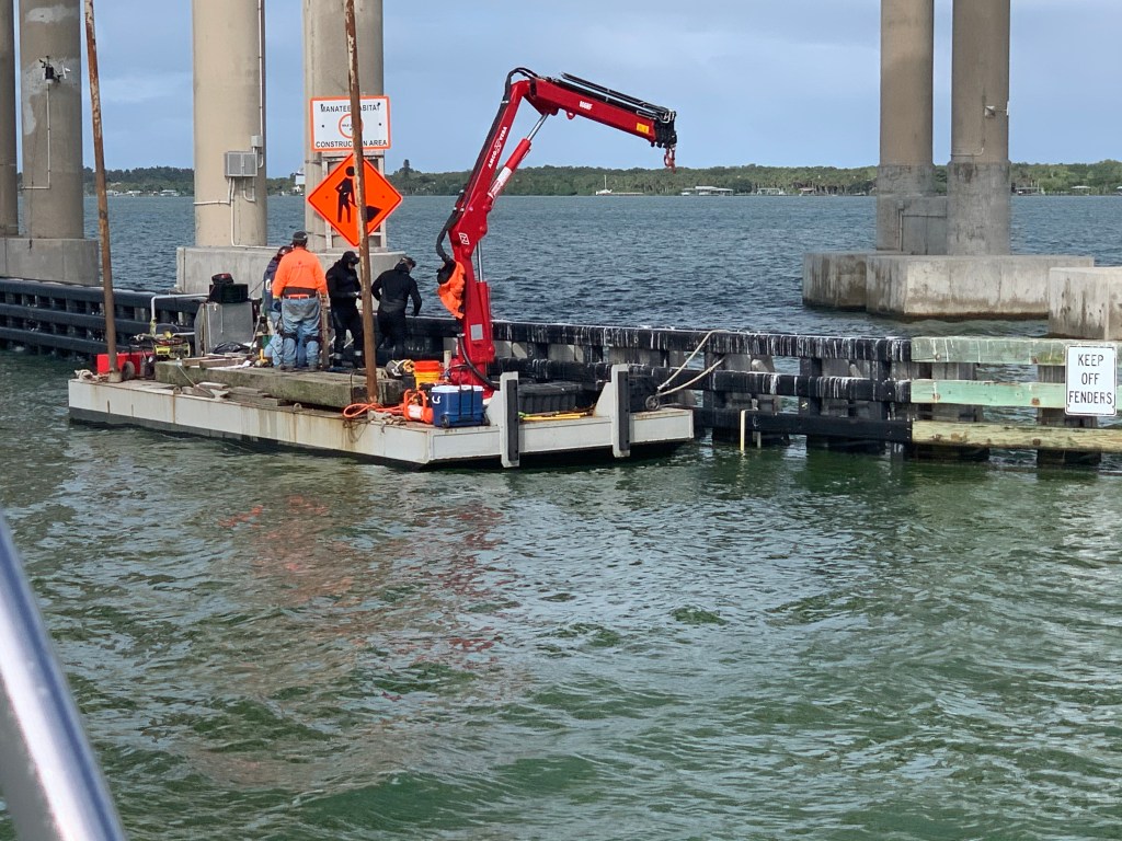 Before I make it to Vero Beach I slow down to minimize my wake as I pass workers diving on a bridge.
