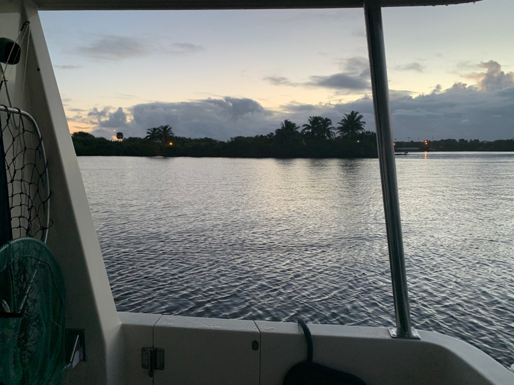 I’m now approaching the Vero Beach marina that I reserved for Saturday and Sunday night. However, I won’t check in till the AM so I must find a suitable anchorage. The anchorage I planned to stay at turned out to be to small to fit me so I pushed on into the night until I found a more suitable anchorage. However, my first attempt at anchoring had my 88# Rocna anchor dragging when I backed down at only 730 RPM. I motored around the anchorage to try and find another spot but found much of the anchorage too shallow for me. It was dark and I was getting tired of circling around the already anchored boats so I just decided to drop again in the same spot. This time I successfully backed down at 800 RPM for a solid 2 minutes while I waited to see if the anchor would budge. It did not so I shutdown the diesel and tucked in for the night.
